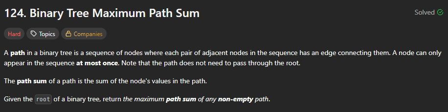 하지만 부모노드에 자신의 최댓값을 전달하는 시점에는, "왼쪽-자기 자신-오른쪽-부모 노드"와 같은 경로 처리가 불가능하므로, 이를 제외해줘야 했다.