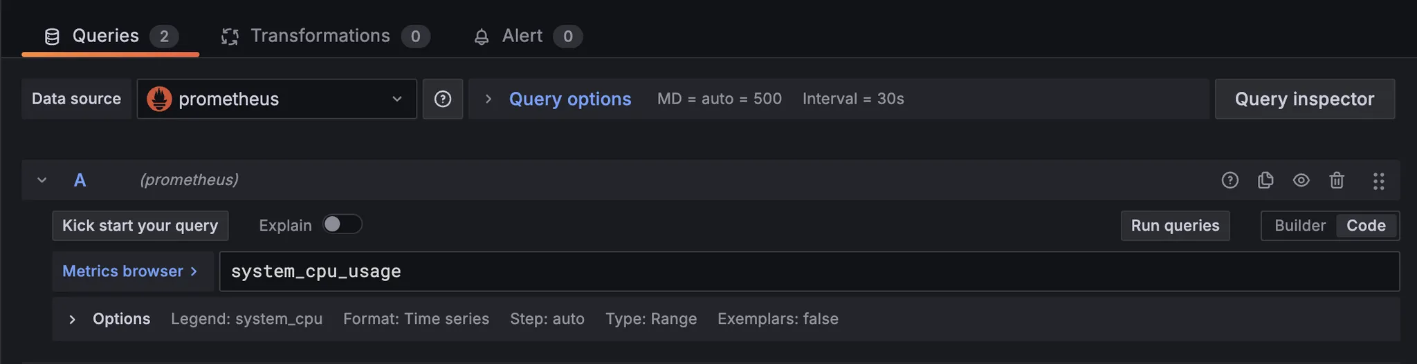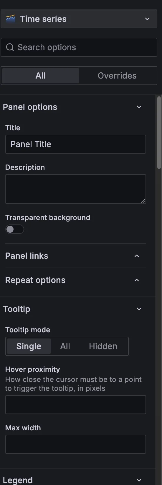 - 해당 쿼리의 패널 내 설정 지정 가능